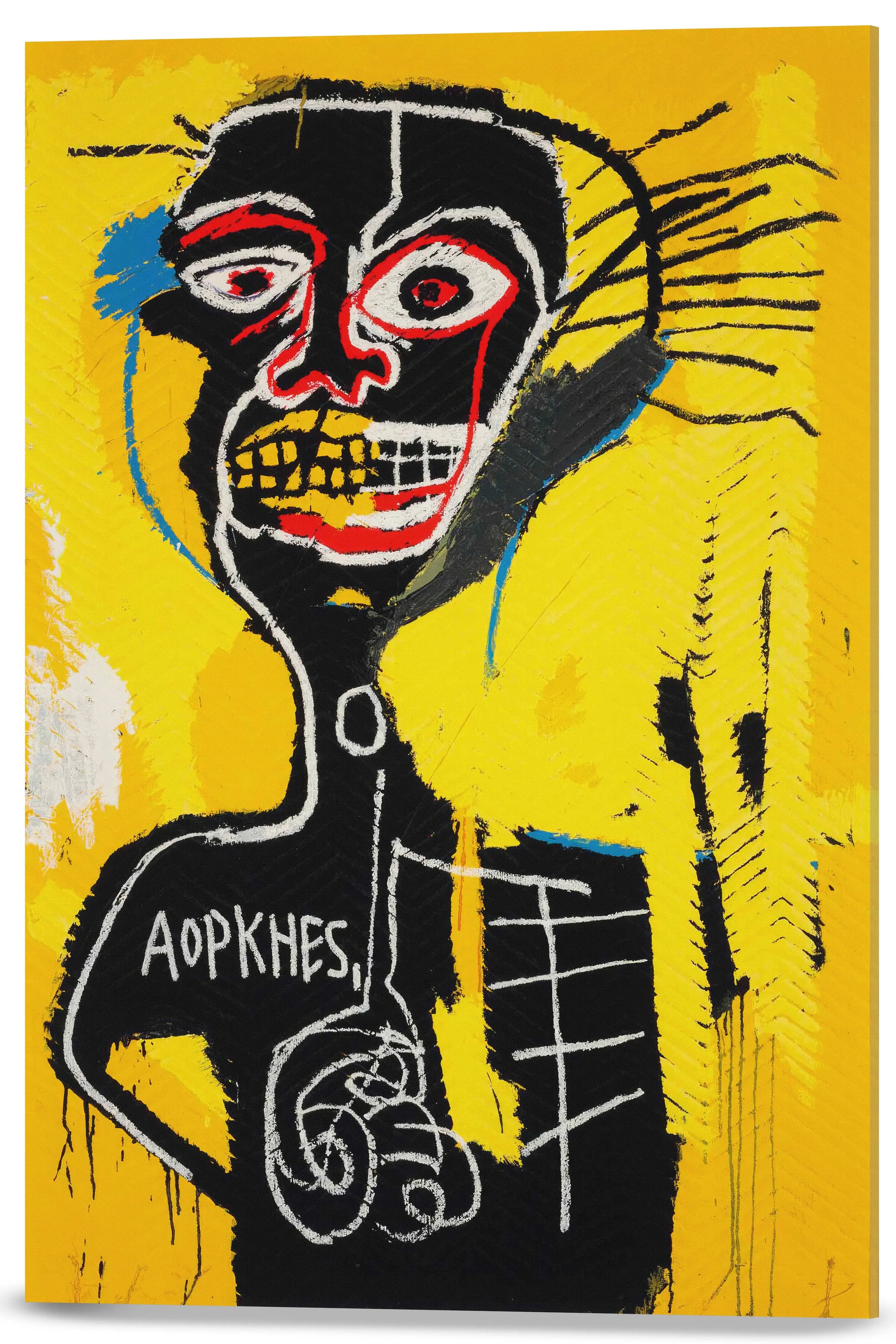 Cabeza es un cuadro de Basquiat de 1982 y por esta época fue particularmente prolífico. Presenta un único retrato figurativo en el estilo característico del artista de detalles abstractos y primitivos que refleja sus propias raíces culturales.