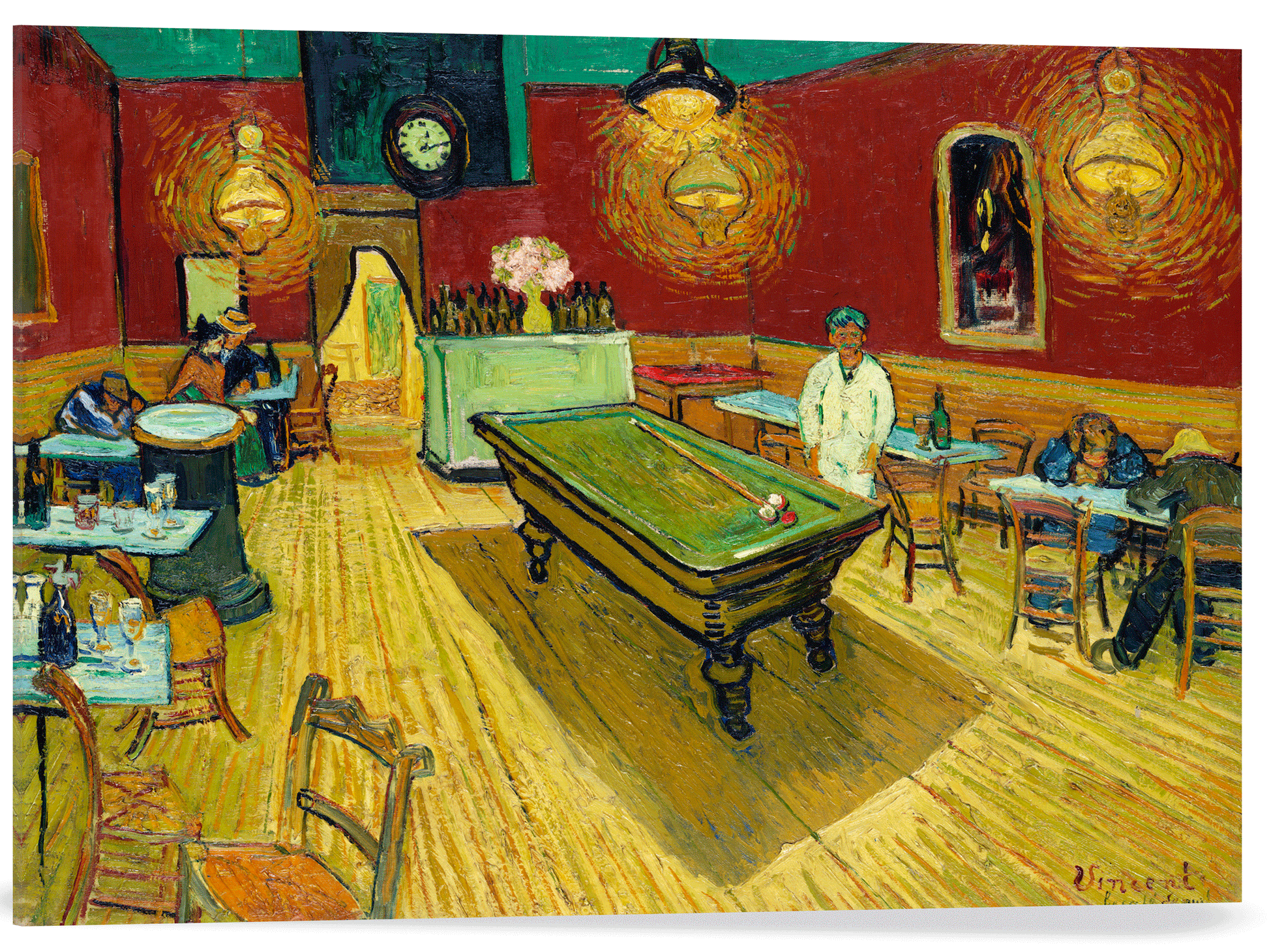 El artista desafió las convenciones, utilizando el color de forma simbólica y expresiva, una característica clave del postimpresionismo. Las pinceladas audaces y la perspectiva distorsionada te sumergen directamente en la escena, creando un impacto visual inmediato, con su iluminación dramática y figuras melancólicas, esta pintura icónica, cuya original se encuentra en la Galería de Arte de la Universidad de Yale, es una adición fascinante para cualquier coleccionista o amante del arte que busque una pieza con una historia profunda y emotiva.