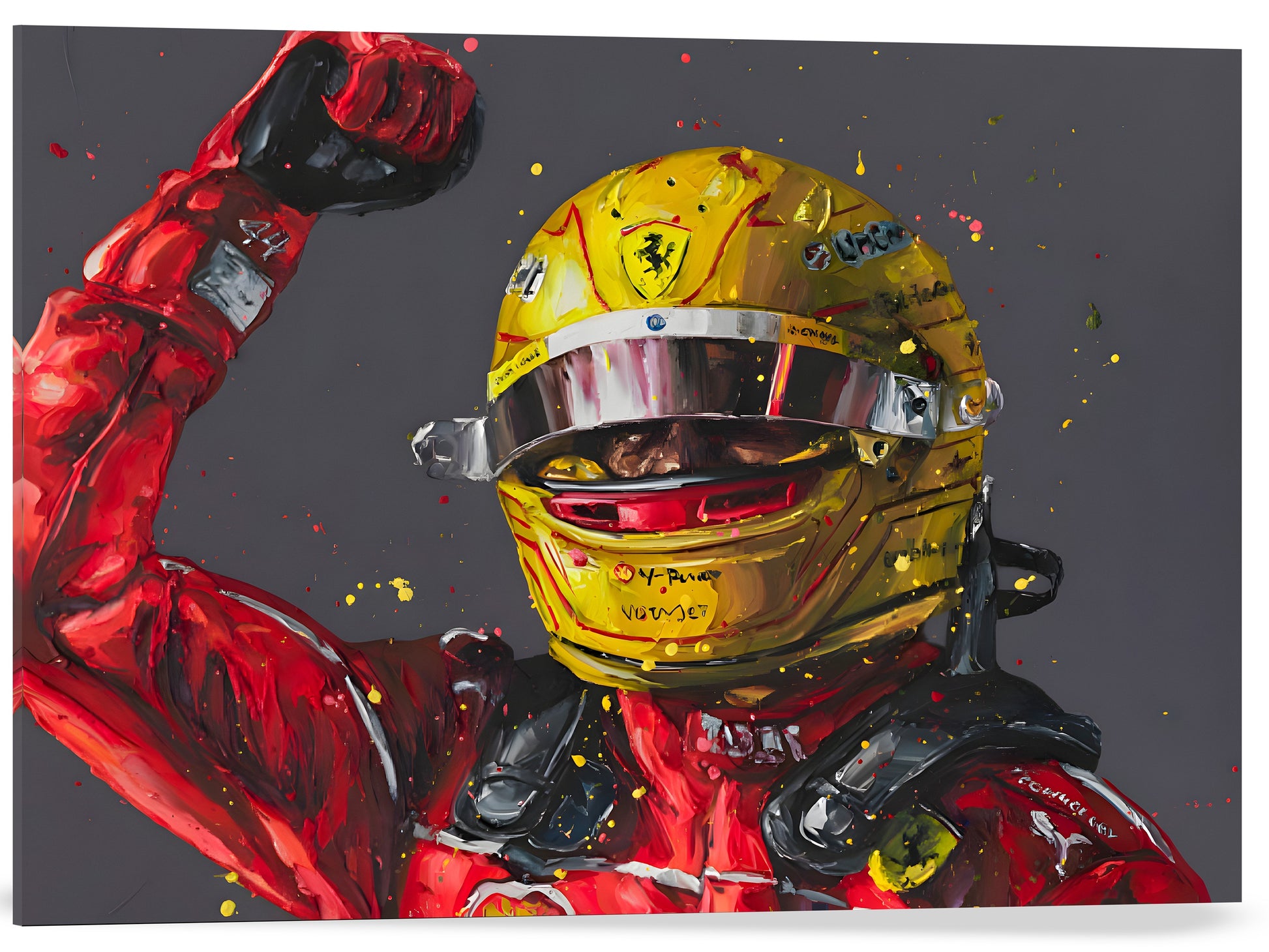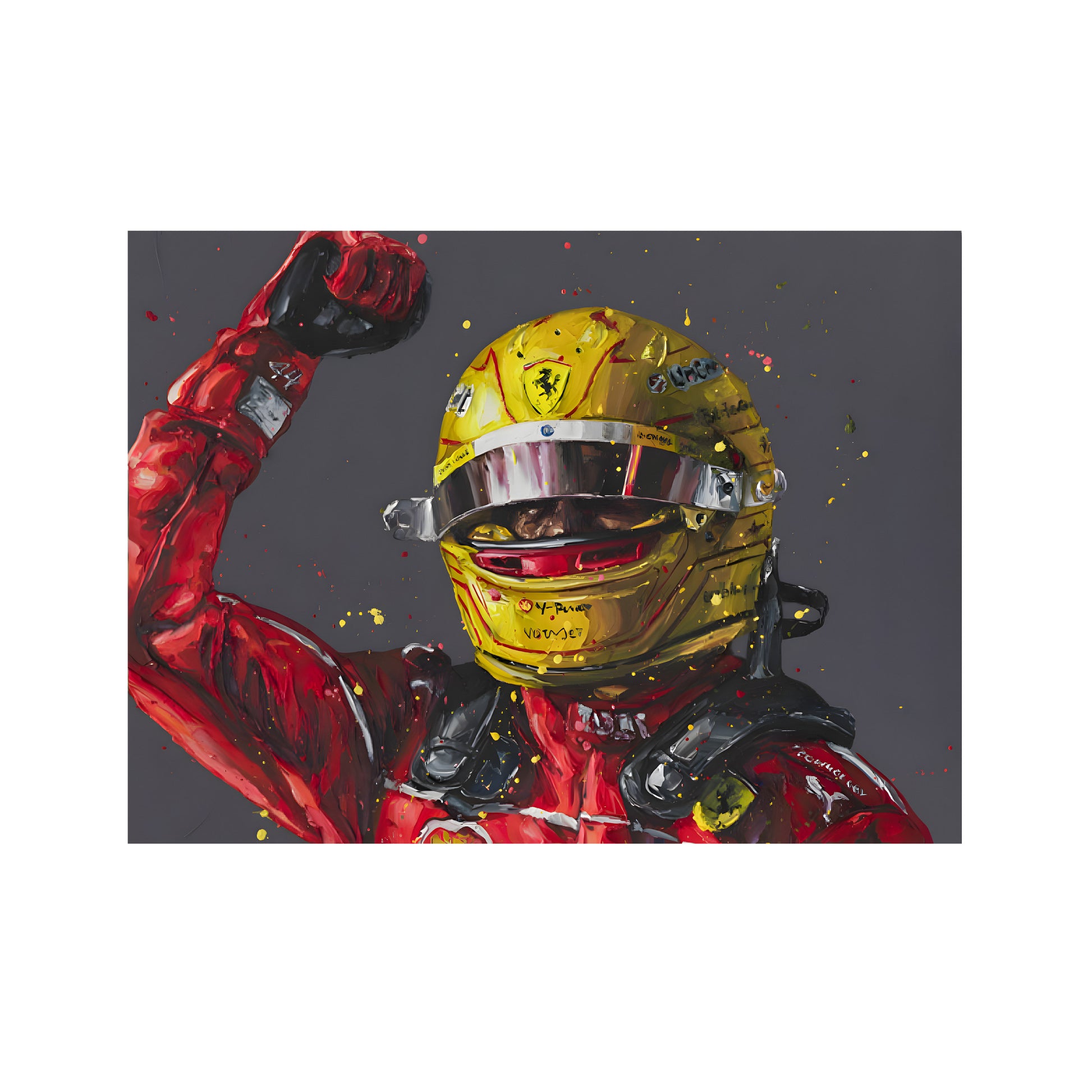 Obra inspirada en la nueva etapa de Lewis Hamilton como piloto de Ferrari. “Il Primo” simboliza el renacer de un campeón en la escudería más legendaria de la Fórmula 1. Con el estilo vibrante, esta pieza captura la fuerza, el orgullo y la emoción del siete veces campeón al vestir de rojo por primera vez.