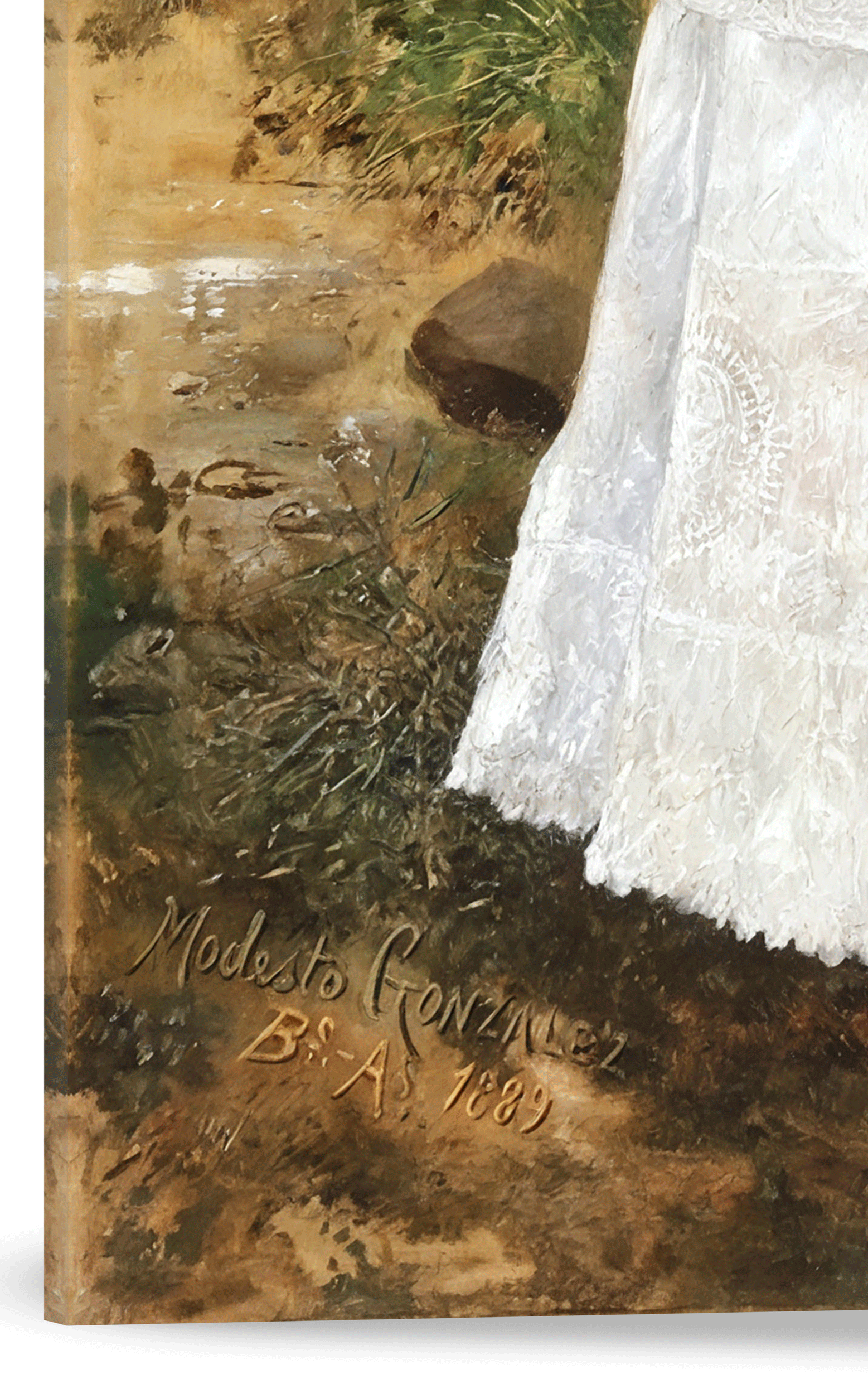 La pintura retrata a una mujer paraguaya en un entorno rural, portando un cántaro de cerámica, símbolo de la vida cotidiana y del rol central de la mujer en la sociedad paraguaya posterior a la Guerra de la Triple Alianza. La vestimenta tradicional, el uso del blanco y la serenidad de la figura reflejan una mirada costumbrista y respetuosa sobre la identidad femenina y la cultura popular del Paraguay de la época.