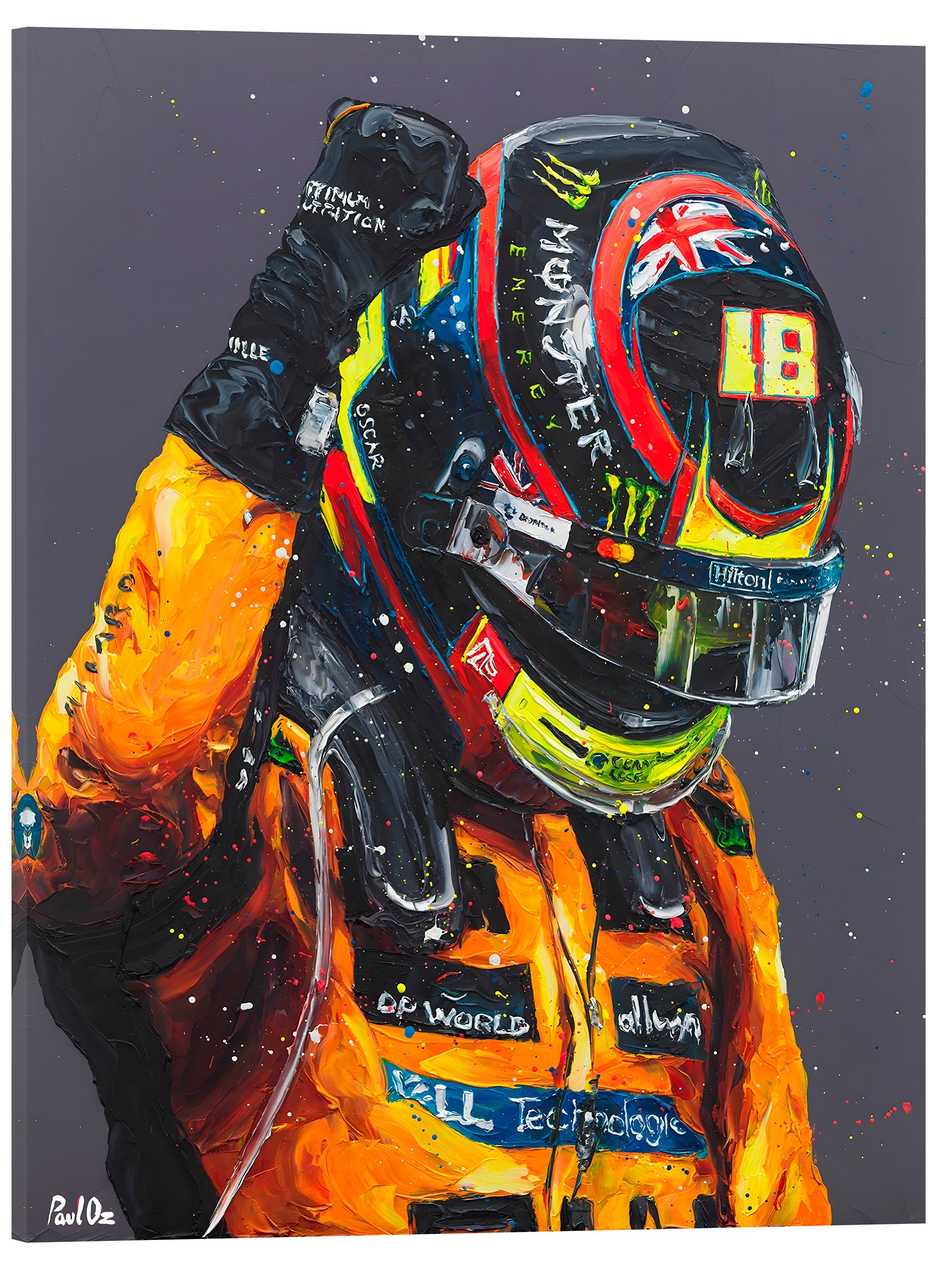 Celebra un momento histórico en la historia de la Fórmula 1 con un impactante retrato del reconocido artista del automovilismo Paul Oz. Capturando la serena intensidad de Oscar Piastri tras su victoria en el Gran Premio de España de 2025, esta pieza inmortaliza el ascenso de la joven estrella de McLaren a lo más alto del podio en el Circuit de Barcelona-Catalunya, transmite tanto la energía pura de la F1 como la serena determinación que define el estilo de conducción de Piastri. Desde la pole position hasta la victoria, Piastri ofreció una actuación impecable.